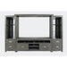 Our Altamonte Collection seamlessly integrates media storage solutions into a clean, modern design made of acacia and veneer. With bold silver hardware and the perfect balance of open and closed storage, this group brings a whole new dimension to your space. This is the complete media wall, including a 70" media console, two piers, and a bridge.