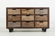 Varied finish tones on the drawer fronts, overall distressing, and industrial casters pair with Solid construction and outstanding value make Jofran's Painted Canyon Collection an ideal add to any home. This case features nine drawers and locking industrial casters.